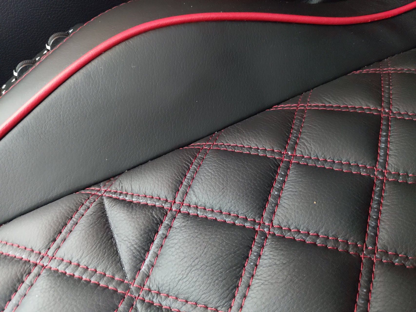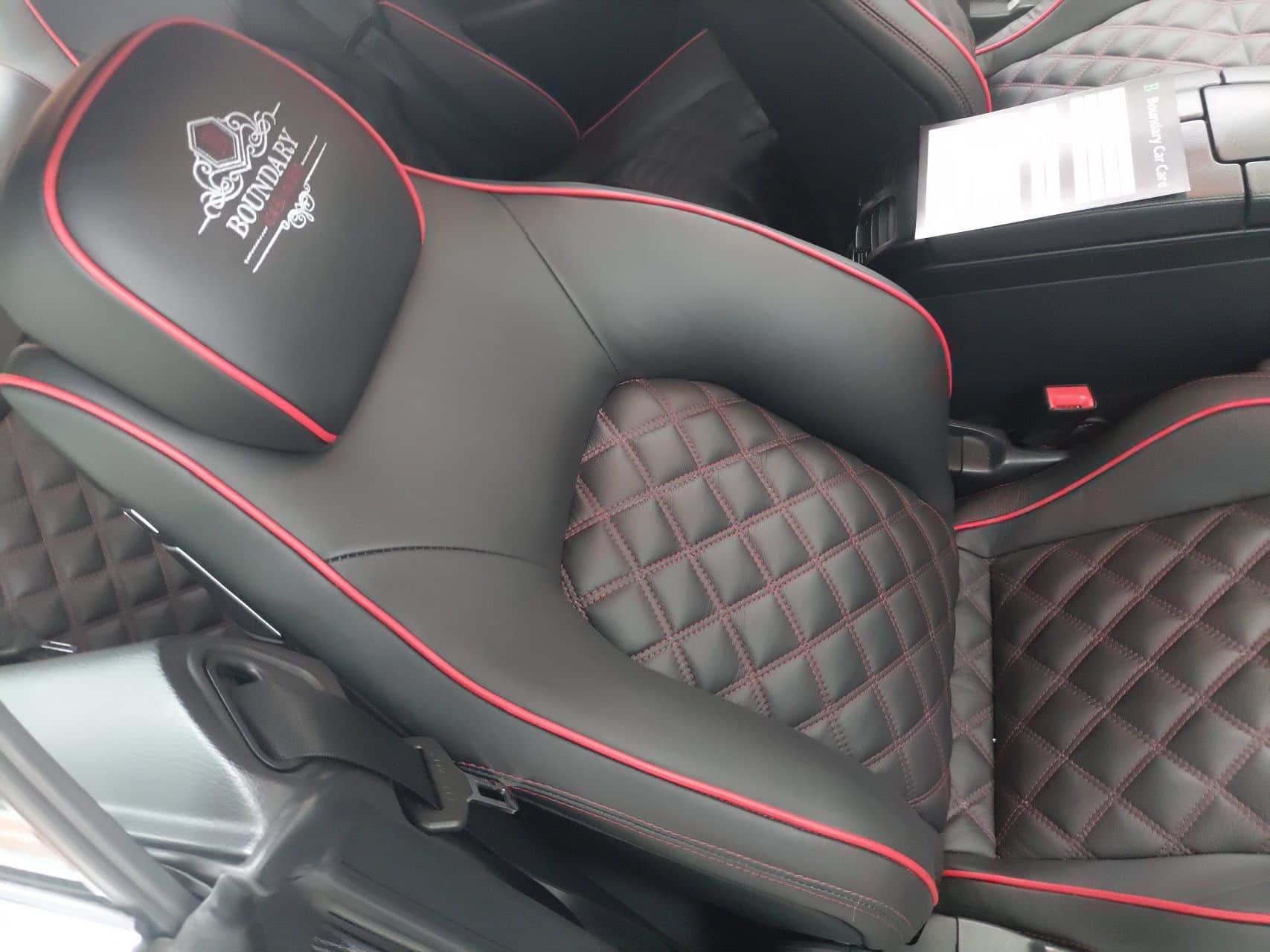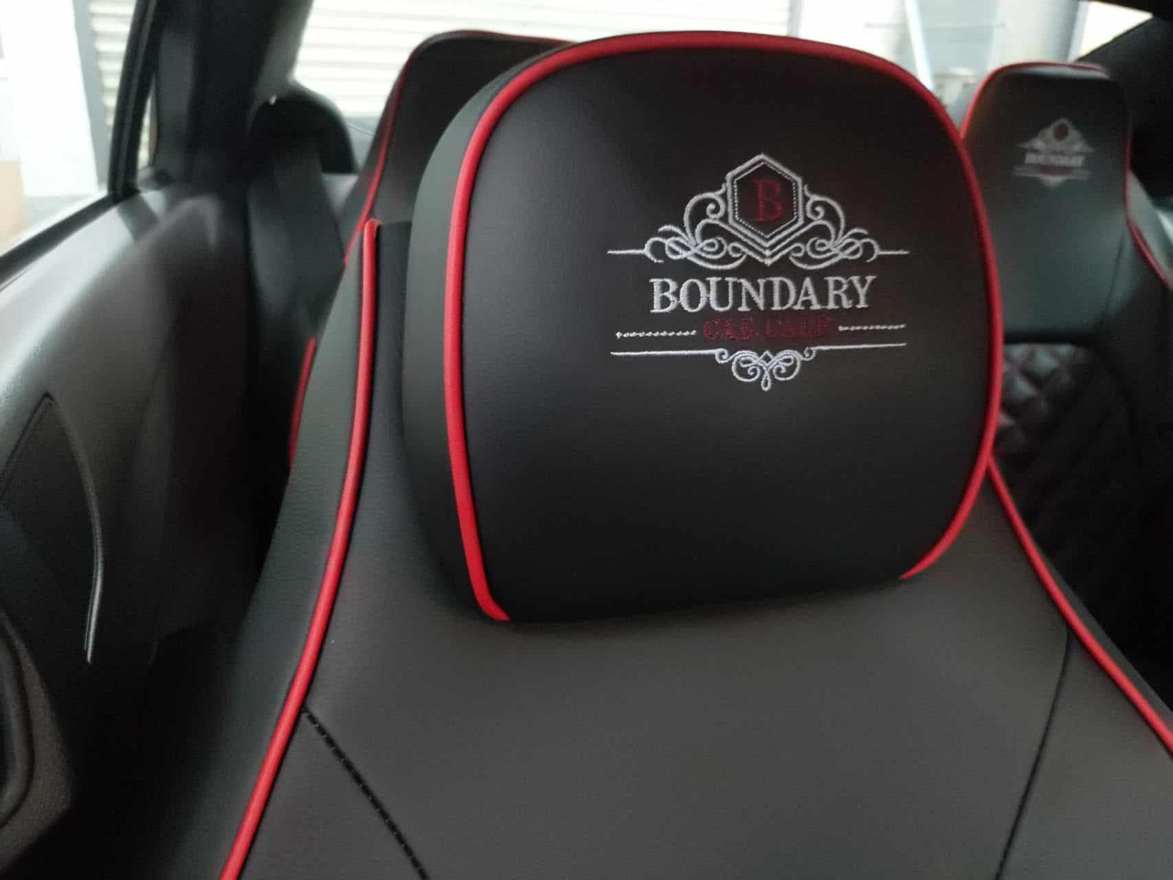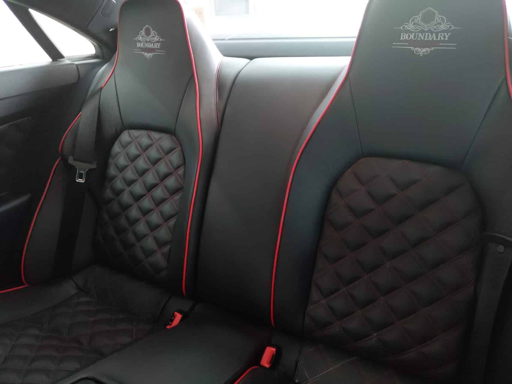 A customer recently brought in a Mercedes E250 with an idea for some custom leather seats with quilted centres and finished off with contrast red stitching and piping and then finished off with headrest embroidery, the logo was the customers own choice. Our upholstery team can recover any vehicle seats in leather with a range of options available. To discuss your requirements please call us on 01744 831282
