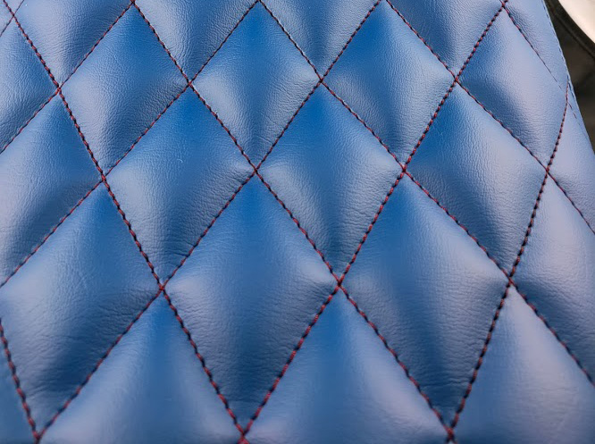 The customer was looking to have their original bike seat scooped and then covered in quilted blue leather with a contrast red stitching. We think we met the customer brief and they are very happy.